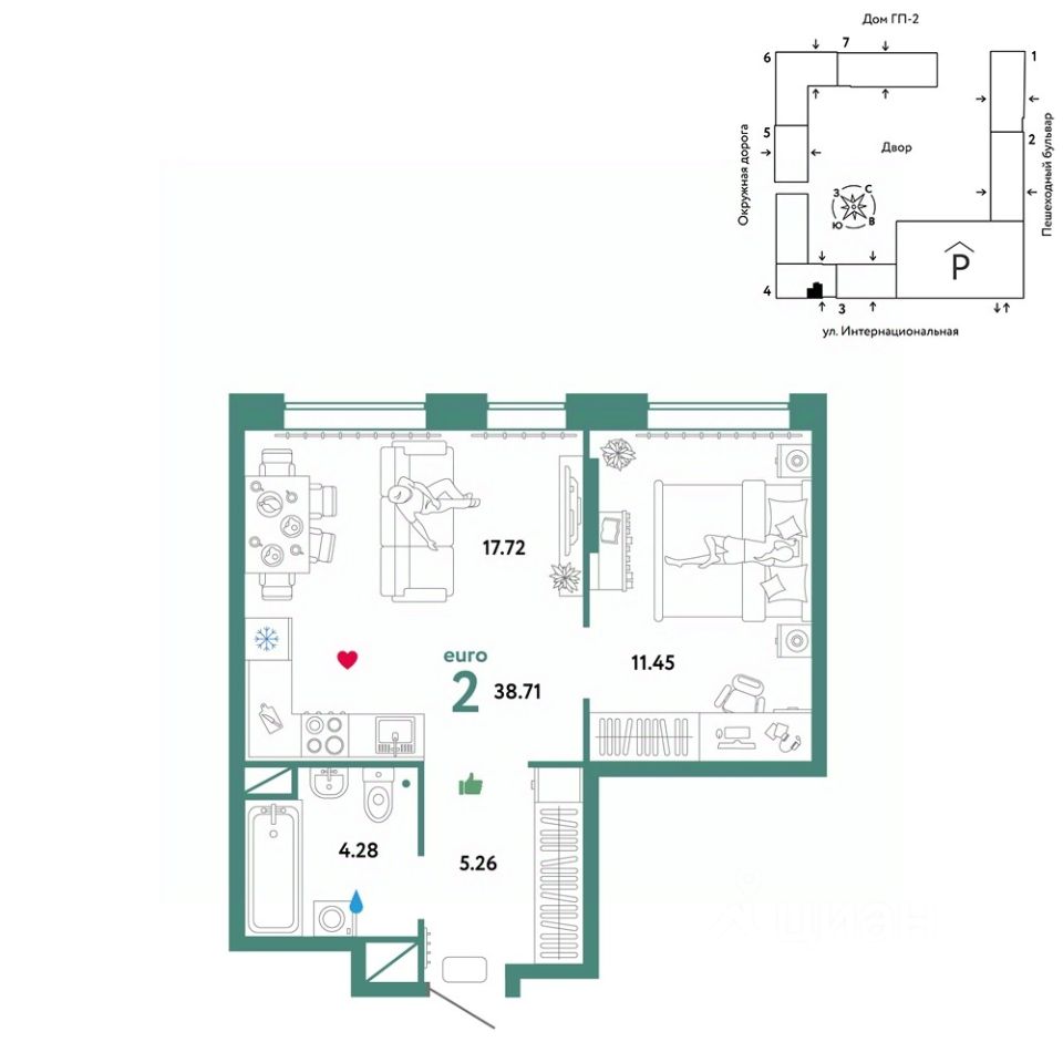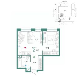Продается 2комнатная квартира в новом ЖК "Юнион". Общая площадь квартиры 38,71 кв. м. Сдача — в 3 квартале 2024 года.
