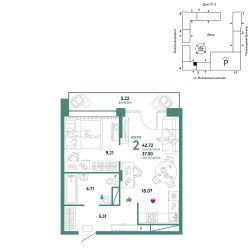 Продается 2комнатная квартира в новом ЖК "Юнион". Общая площадь квартиры 42,72 кв. м. Сдача — в 3 квартале 2024 года.
