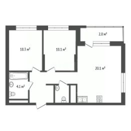 Выровненные и шпаклёванные под маяк стен, стяжка пола с шумопоглощающим эффектом, гидроизоляция пола в мокрых зонах, счетчики для воды, горизонтальная разводка отопления, входная металлическая дверь.
