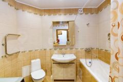 В квартире выполнен косметический ремонт в пастельных тонах. В комнате на полу ламинат, на кухне и санузле-плитка. Большая многофункциональная кухня-гостиная. Хорошая шумоизоляция.