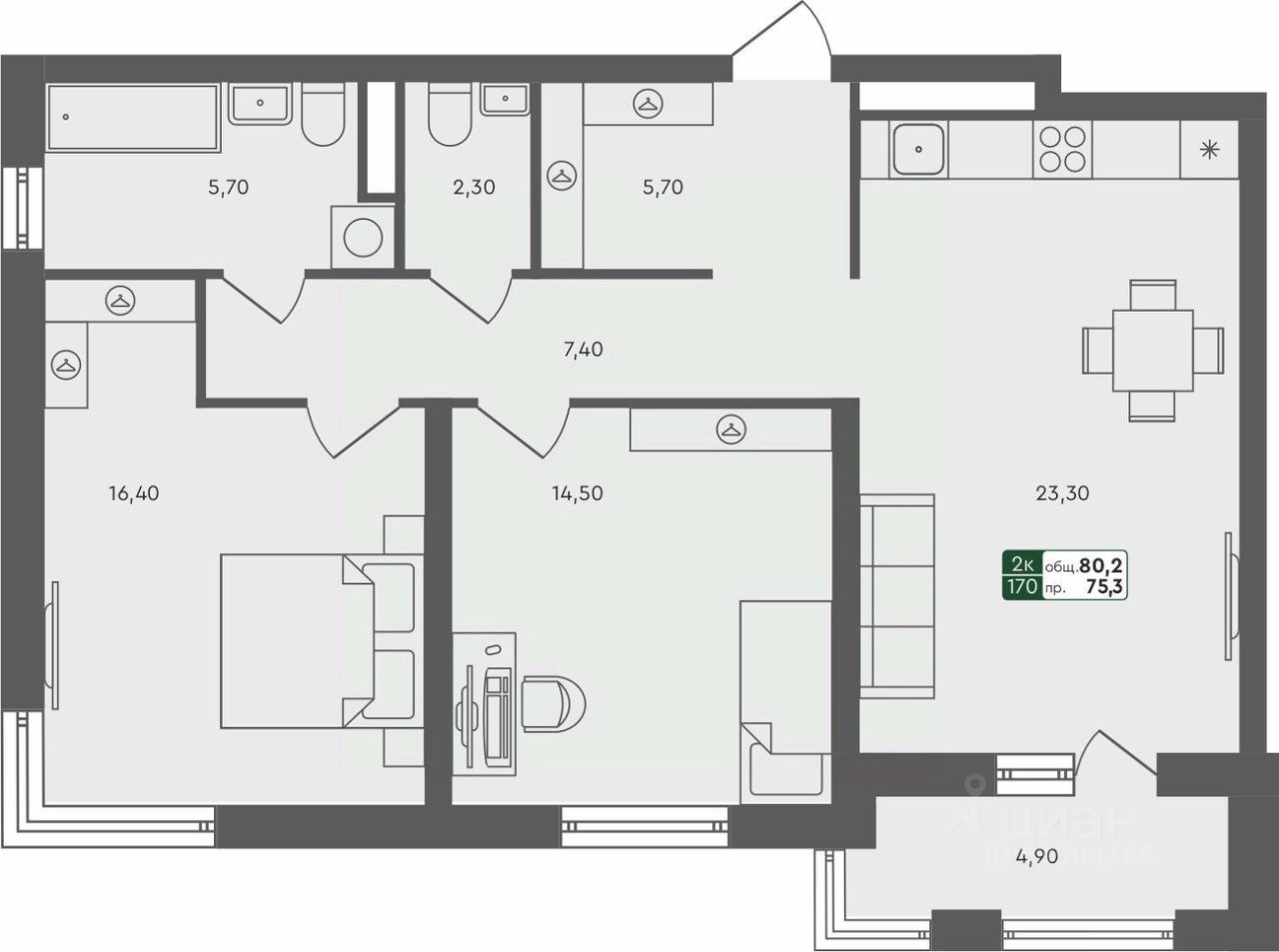 Продаётся 2-комнатная квартира в строящемся доме (ГП-8 (Бульварная, 13)), срок сдачи: II-кв. 2026, общей площадью 80.2 кв.м., на 4 этаже. Проект в формате "Дома не выше сосен" отражает синтез великолепной архитектуры, престижной инфраструктуры и разумной стоимости. Жилье повышенного качества по доступной цене городского типа (квартиры), таунхаусы и индивидуальные дома с земельными участками характеризуются высокой транспортной доступностью исторического Тобольского тракта и формируют гармоничную и экологичную среду для комфортного проживания.