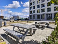 Жилой комплекс сочетает современные стандарты комфорта и развитую инфраструктуру. В здании предусмотрены коммерческие помещения с уже работающими магазинами, а в ближайшей перспективе — строительство школы и детского сада. Просторные озелененные дворы спроектированы по принципу "двор-парк": здесь оборудованы безопасные детские и спортивные площадки, зоны отдыха для взрослых. Входы в подъезды выполнены на уровне земли, что обеспечивает удобство для жителей с детьми и маломобильных групп.