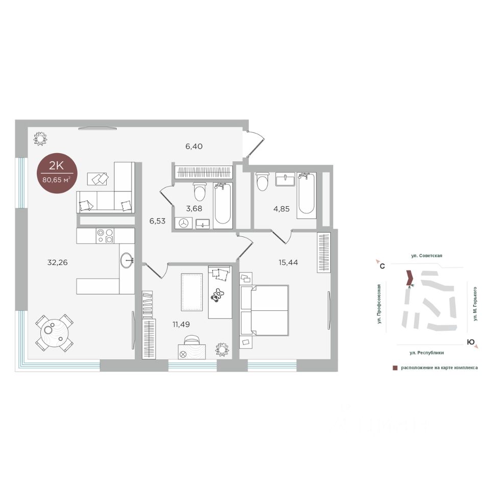 Территория квартала - это квадрат улиц Профсоюзная-Республики-Советская-М.Горького. Застройщиком спроектированы квартиры от студий до четырехкомнатных, общей площадью от 29.6 до 146.3 кв. м. Дома сдаются в предчистовой отделке.