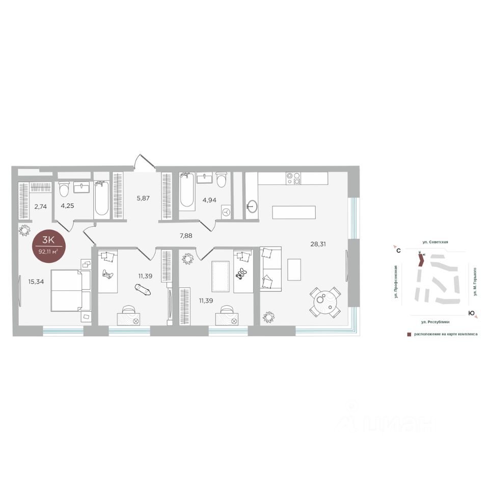 Общая площадь92,11 м²
