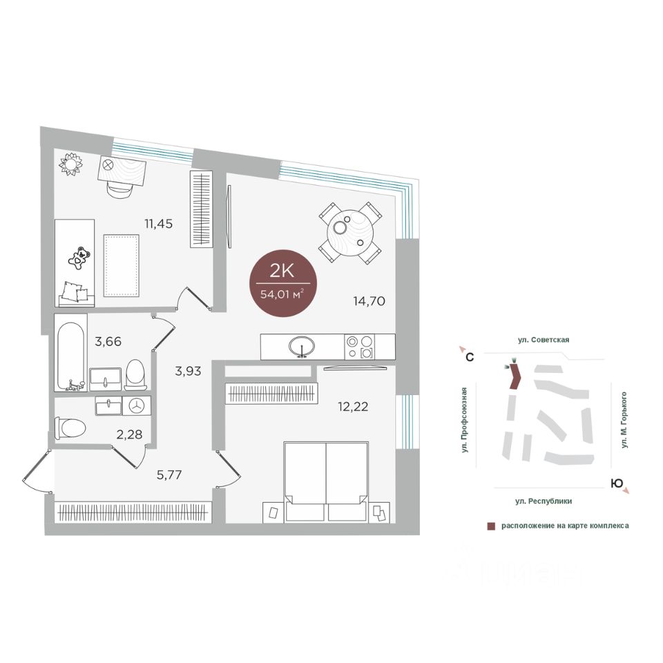 Территория квартала - это квадрат улиц Профсоюзная-Республики-Советская-М.Горького. Застройщиком спроектированы квартиры от студий до четырехкомнатных, общей площадью от 29.6 до 146.3 кв. м. Дома сдаются в предчистовой отделке.