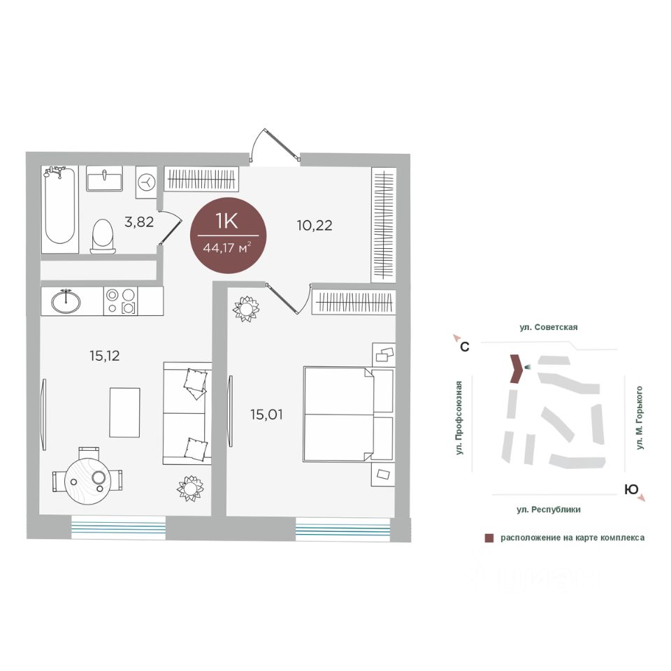 Общая площадь44,17 м²