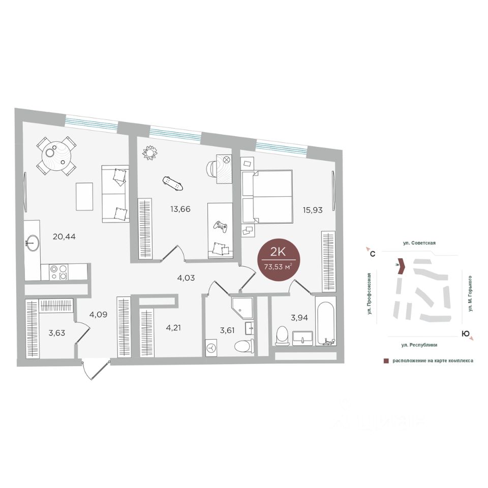 Общая площадь73,53 м²