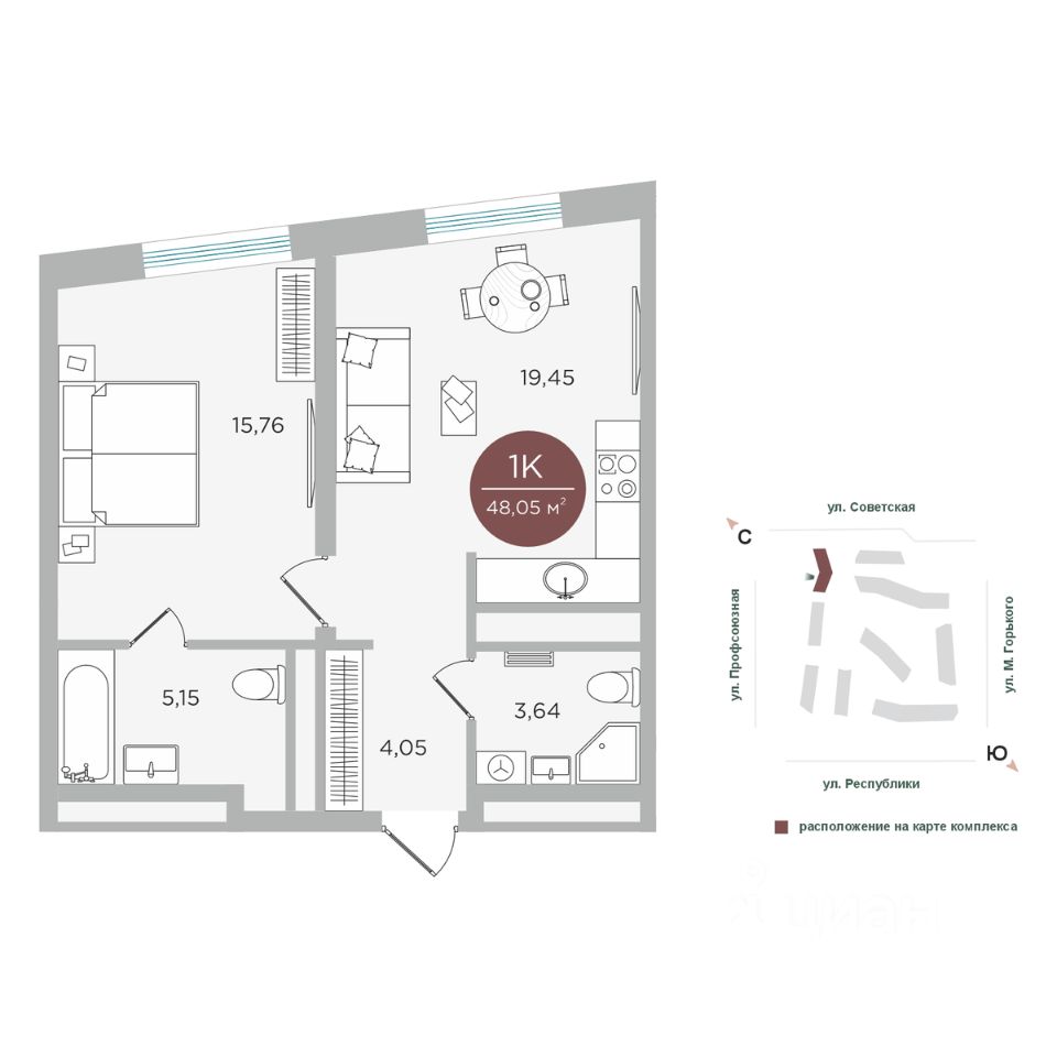 Территория квартала - это квадрат улиц Профсоюзная-Республики-Советская-М.Горького. Застройщиком спроектированы квартиры от студий до четырехкомнатных, общей площадью от 29.6 до 146.3 кв. м. Дома сдаются в предчистовой отделке.