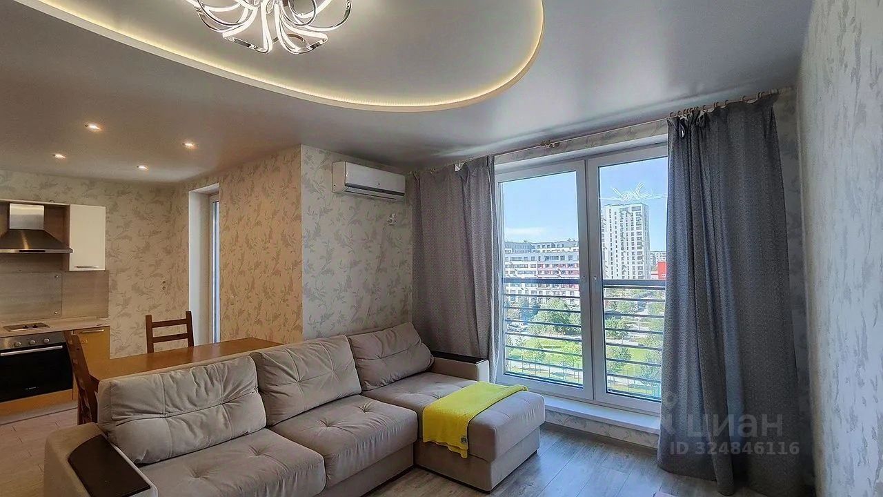 Выполнен хороший ремонт в спокойных тонах, на полу ламинат и плитка, в санузле теплый пол. В кухне-гостиной несколько сценариев освещения. В квартире остаётся вся мебель и техника.