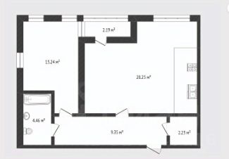В квартире помимо кухни-гостинной и спальни имеется гардеробная, закрытая лоджия, совмещённый санузел.