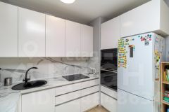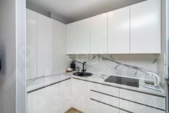 - Современная кухонный гарнитур со встроенной техникой: духовой шкаф микроволновка, варочная панель, большая вместительная посудомоечная машина.