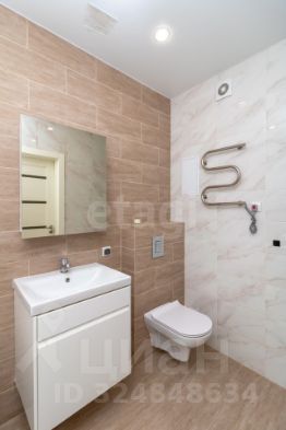 Санузел оборудован качественным керамическим покрытием, обеспечивая гигиеничность и долговечность интерьера.