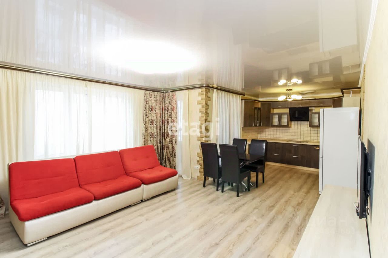 Современная планировка: кухня, примыкающая к гостиной(общая площадь 27 кв.м), две спальни, лоджия с красивым видом на улицу (панорамное остекление) . Квартира-распашонка, окна на две стороны, светло весь день - и утром, и после обеда. В квартире два санузла. В одном установлены ванна, умывальник и унитаз. Во втором оборудован унитаз и умывальник. В квартире сделан хороший косметический ремонт.