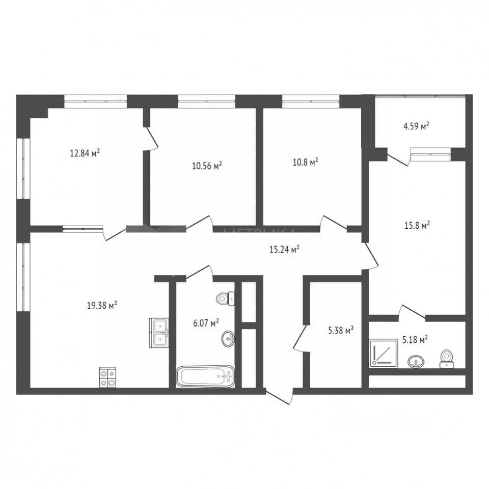 Продаётся 3-комнатная квартира в 1-м Заречном микрорайоне. Общая проектная площадь квартиры составляет 106 кв.м. Она включает в себя следующие помещения: