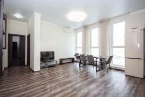 Панорамные окна наполняют все помещения естественным светом, открывая завораживающие виды на городские пейзажи и окрестности. Стены окрашены в мягкие, успокаивающие оттенки, а натяжные потолки визуально расширяют пространство, создавая ощущение свободы и легкости.