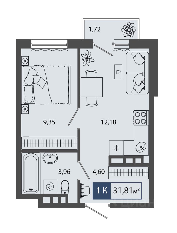 Общая площадь31,81 м²