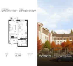 Продаётся квартира площадью 38.2 м2 в жилом комплексе "Смородина". Квартира находится на 2 этаже, жилая площадь квартиры 10.83 м2, площадь просторной кухни — 14.36 м2. Среди особенностей планировки — изолированные комнаты с окнами на одну сторону, 1 совмещённый санузел.