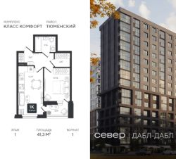 Продаётся квартира площадью 41.3 м2 в жилом комплексе "Дабл-Дабл". Квартира находится на 1 этаже, жилая площадь квартиры 10.92 м2, площадь просторной кухни — 15.07 м2. Среди особенностей планировки — изолированные комнаты с окнами на одну сторону, 1 совмещённый санузел.