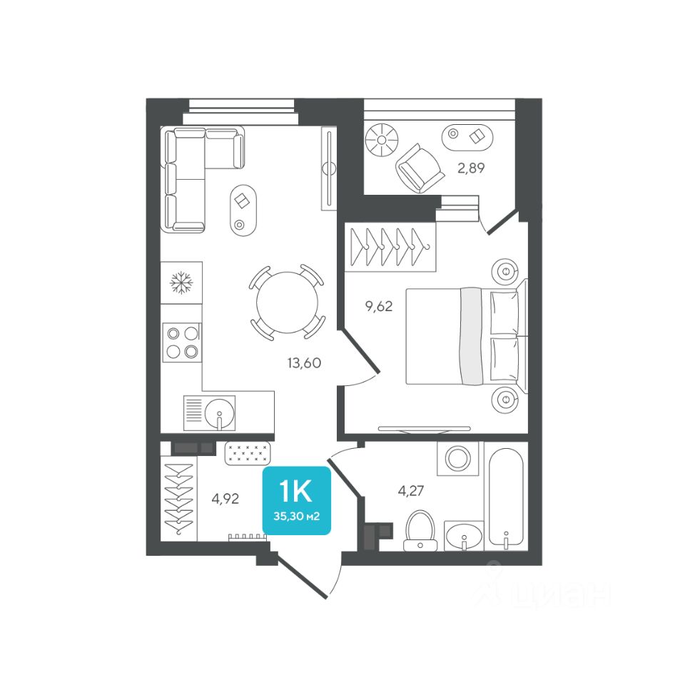 Общая площадь35,3 м²