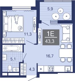Общая площадь43,3 м²