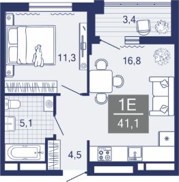Общая площадь41,1 м²