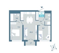 Общая площадь53,6 м²