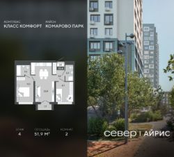 Продаётся квартира площадью 51.9 м2 в жилом комплексе "Айрис".
