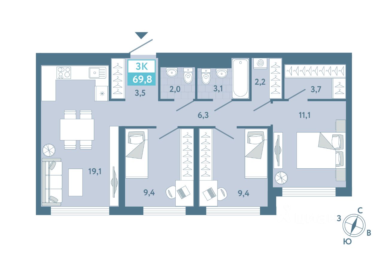Жилой комплекс "Айрис" — это: - фиджитал-квартал в Тюмени - дома высотой от 7 до 25 этажей - квартиры с системой "Умный дом" - цифровые технологии как элемент благоустройства Окружение В нескольких минутах ходьбы от дома — парк "Комарово" с волейбольной площадкой, открытым кинотеатром, зонами для барбекю и катком. Неподалеку от Airis находится центр иппотерапии, где можно покататься на лошадях и взять уроки верховой езды. На территории Airis появится собственный парк с прогулочными аллеями. Инфраструктура В 5-10 минутах от квартала открыты 2 детских сада и гимназия. На шопинг можно отправиться в торговые комплексы "Колумб" и "Кристалл" — они находятся недалеко от дома. Благоустройство Уютный двор — приватное пространство для жителей. В беседках можно будет почитать книгу в тишине, а в тени деревьев устроиться на пикник. На крыше многоуровневого паркинга будет лаунж-зона с кинотеатром, баскетбольная площадка и воркаут-пространство, где можно позаниматься с виртуальным тренером — достаточно отсканировать код. Лобби Интерьеры лобби выполнены в пастельных тонах с элементами фиджитал-решений. Для отдыха и ожидания гостей создана лаунж-зона. Также есть гостевые санузлы. Колясочные Возвращайтесь налегке после прогулки с малышом — оставить коляску можно в специальном помещении на первом этаже. Кладовые Для сезонных и габаритных вещей предусмотрены отдельные кладовые на цокольном этаже. В каждом помещении уже проведено электричество и выполнена стяжка пола. Паркинг На территории — два многоуровневых наземных паркинга. Один из них примыкает к домам — из него можно напрямую пройти в парадные. Планировки Планировки квартала — от компактной студии до сити-хауса с собственным палисадником — соответствуют любым жизненным сценариям. Можно выбрать квартиры с террасами и готовыми дизайнерскими интерьерами.