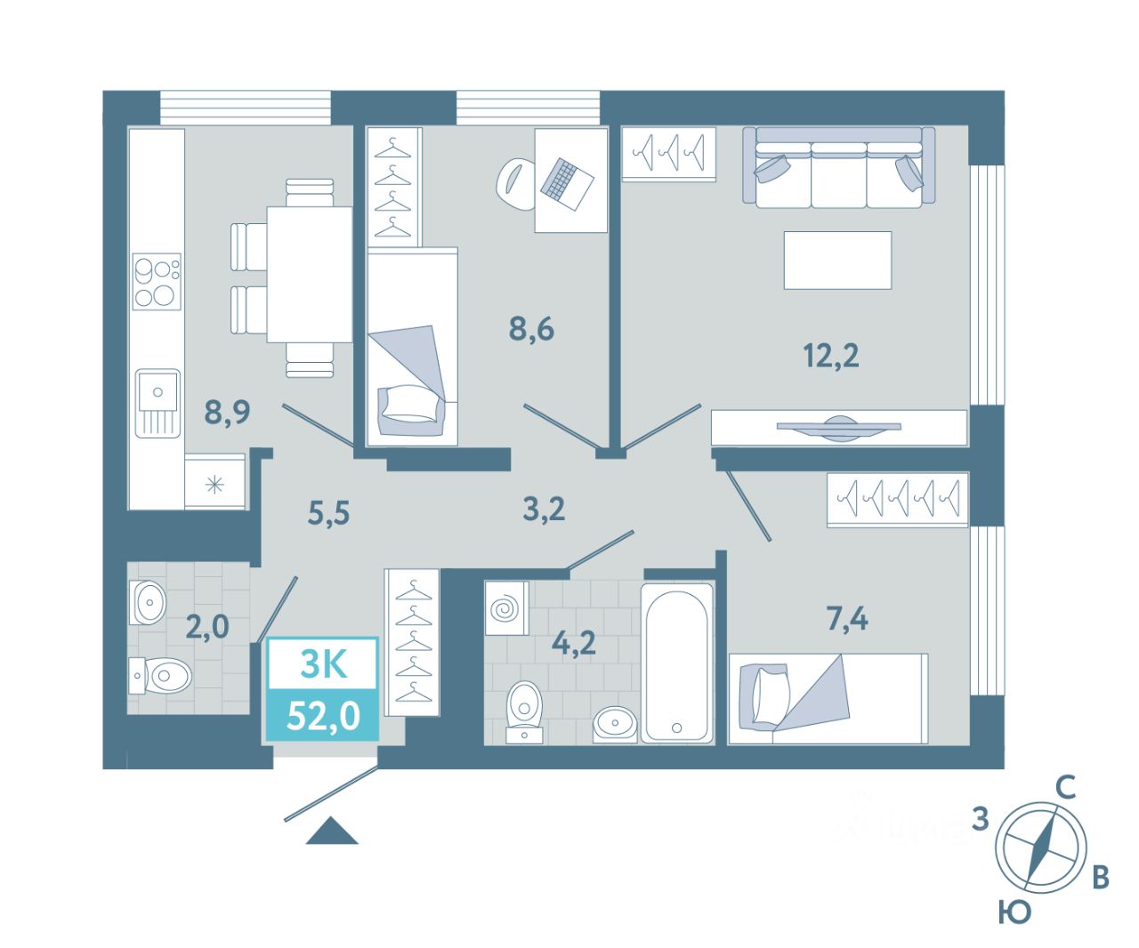 Общая площадь52 м²