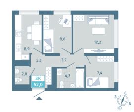 Продается 3-комн. квартира, 52 м²