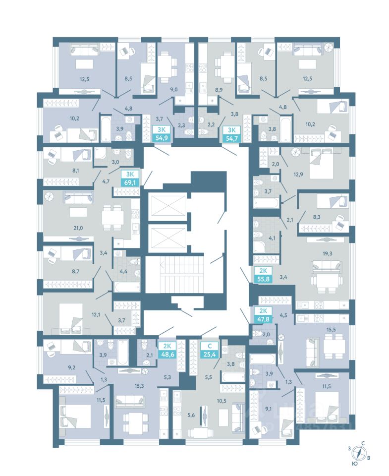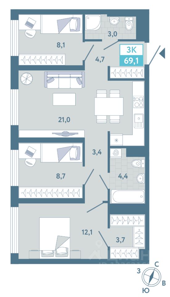 Общая площадь69,1 м²