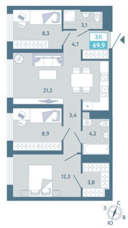 Жилой комплекс "Айрис" — это: - фиджитал-квартал в Тюмени - дома высотой от 7 до 25 этажей - квартиры с системой "Умный дом" - цифровые технологии как элемент благоустройства Окружение В нескольких минутах ходьбы от дома — парк "Комарово" с волейбольной площадкой, открытым кинотеатром, зонами для барбекю и катком. Неподалеку от Airis находится центр иппотерапии, где можно покататься на лошадях и взять уроки верховой езды. На территории Airis появится собственный парк с прогулочными аллеями. Инфраструктура В 5-10 минутах от квартала открыты 2 детских сада и гимназия. На шопинг можно отправиться в торговые комплексы "Колумб" и "Кристалл" — они находятся недалеко от дома. Благоустройство Уютный двор — приватное пространство для жителей. В беседках можно будет почитать книгу в тишине, а в тени деревьев устроиться на пикник. На крыше многоуровневого паркинга будет лаунж-зона с кинотеатром, баскетбольная площадка и воркаут-пространство, где можно позаниматься с виртуальным тренером — достаточно отсканировать код. Лобби Интерьеры лобби выполнены в пастельных тонах с элементами фиджитал-решений. Для отдыха и ожидания гостей создана лаунж-зона. Также есть гостевые санузлы. Колясочные Возвращайтесь налегке после прогулки с малышом — оставить коляску можно в специальном помещении на первом этаже. Кладовые Для сезонных и габаритных вещей предусмотрены отдельные кладовые на цокольном этаже. В каждом помещении уже проведено электричество и выполнена стяжка пола. Паркинг На территории — два многоуровневых наземных паркинга. Один из них примыкает к домам — из него можно напрямую пройти в парадные. Планировки Планировки квартала — от компактной студии до сити-хауса с собственным палисадником — соответствуют любым жизненным сценариям. Можно выбрать квартиры с террасами и готовыми дизайнерскими интерьерами.