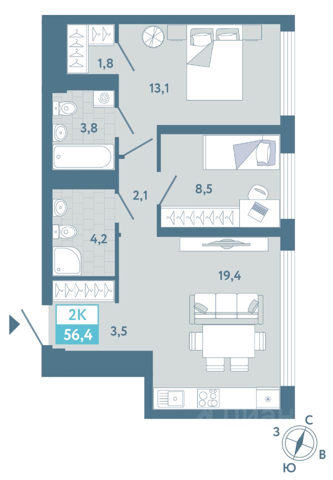 Жилой комплекс "Айрис" — это: - фиджитал-квартал в Тюмени - дома высотой от 7 до 25 этажей - квартиры с системой "Умный дом" - цифровые технологии как элемент благоустройства Окружение В нескольких минутах ходьбы от дома — парк "Комарово" с волейбольной площадкой, открытым кинотеатром, зонами для барбекю и катком. Неподалеку от Airis находится центр иппотерапии, где можно покататься на лошадях и взять уроки верховой езды. На территории Airis появится собственный парк с прогулочными аллеями. Инфраструктура В 5-10 минутах от квартала открыты 2 детских сада и гимназия. На шопинг можно отправиться в торговые комплексы "Колумб" и "Кристалл" — они находятся недалеко от дома. Благоустройство Уютный двор — приватное пространство для жителей. В беседках можно будет почитать книгу в тишине, а в тени деревьев устроиться на пикник. На крыше многоуровневого паркинга будет лаунж-зона с кинотеатром, баскетбольная площадка и воркаут-пространство, где можно позаниматься с виртуальным тренером — достаточно отсканировать код. Лобби Интерьеры лобби выполнены в пастельных тонах с элементами фиджитал-решений. Для отдыха и ожидания гостей создана лаунж-зона. Также есть гостевые санузлы. Колясочные Возвращайтесь налегке после прогулки с малышом — оставить коляску можно в специальном помещении на первом этаже. Кладовые Для сезонных и габаритных вещей предусмотрены отдельные кладовые на цокольном этаже. В каждом помещении уже проведено электричество и выполнена стяжка пола. Паркинг На территории — два многоуровневых наземных паркинга. Один из них примыкает к домам — из него можно напрямую пройти в парадные. Планировки Планировки квартала — от компактной студии до сити-хауса с собственным палисадником — соответствуют любым жизненным сценариям. Можно выбрать квартиры с террасами и готовыми дизайнерскими интерьерами.