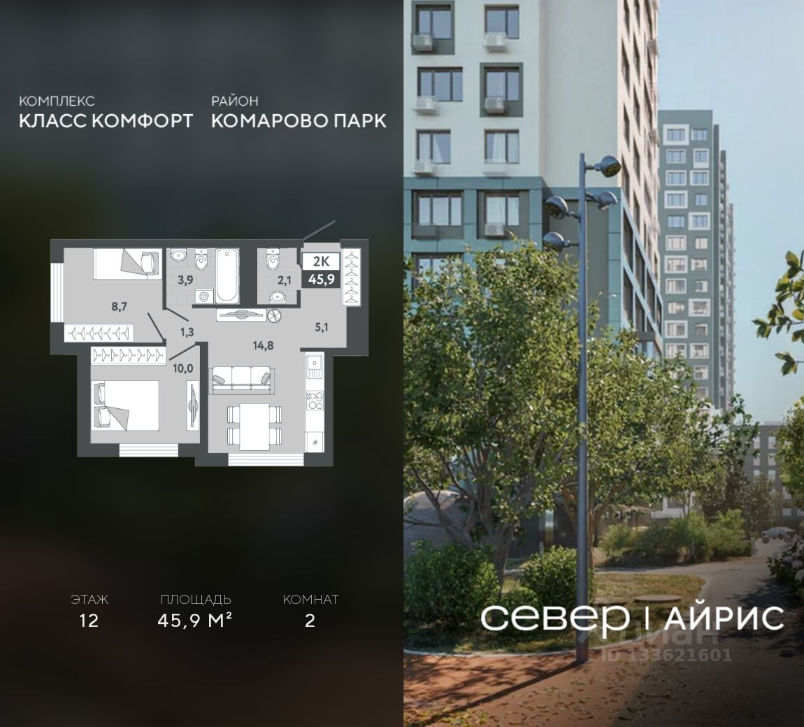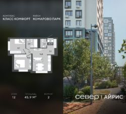 Продаётся квартира площадью 45.9 м2 в жилом комплексе "Айрис".
