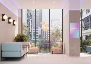 Интерьеры лобби выполнены в пастельных тонах с элементами фиджитал-решений. Для отдыха и ожидания гостей создана лаунж-зона. Также есть гостевые санузлы.