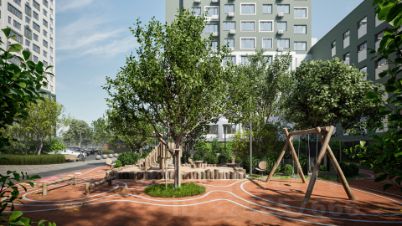 Уютный двор — приватное пространство для жителей. В беседках можно будет почитать книгу в тишине, а в тени деревьев устроиться на пикник. На крыше многоуровневого паркинга будет лаунж-зона с кинотеатром, баскетбольная площадка и воркаут-пространство, где можно позаниматься с виртуальным тренером — достаточно отсканировать код.