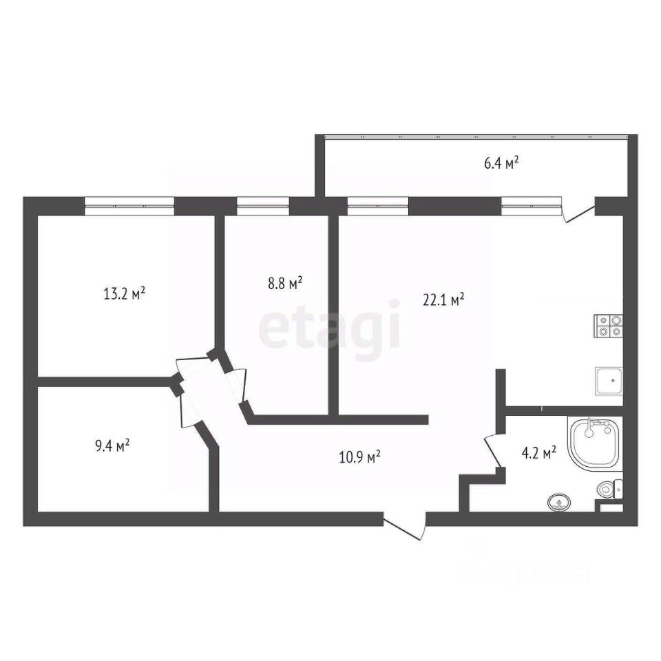 Продаётся просторная 3-комнатная квартира 70.3 м² в ЖК "ФЭНСИ"