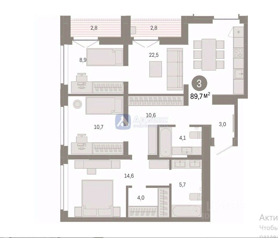 Приобретая эту квартиру в новом доме на 15 этаже 16-этажного жилого комплекса, вы получите пространство площадью 89.68 кв.м. с 3 комнатами и отличной планировкой. Кухня здесь большая - 22.5 кв.м., что позволит вам комфортно проводить время за готовкой и совместными обедами.