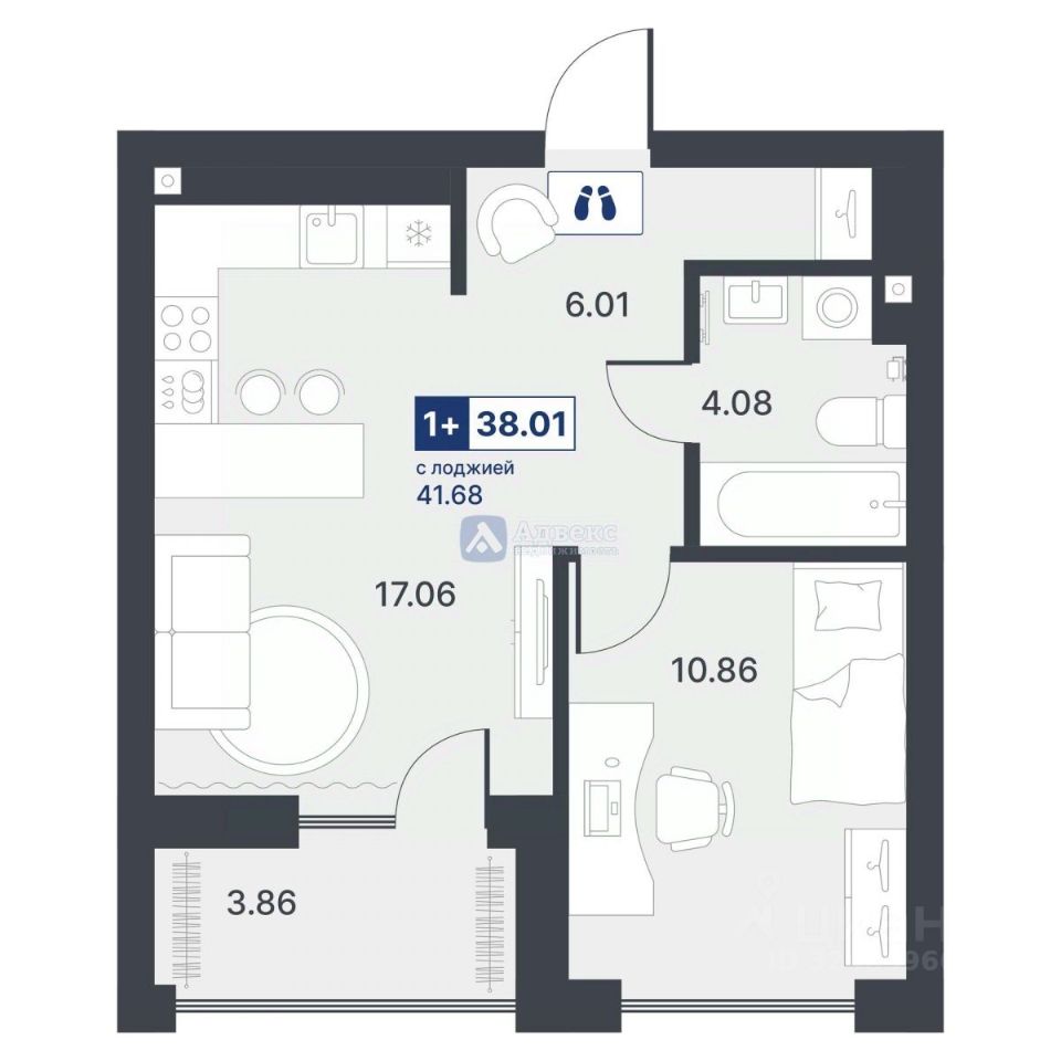 Только 1 комната, но благодаря удобной планировке площадь квартиры составляет 38.01 кв.м.