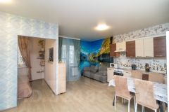 При входе просторная прихожая. Из прихожей вы попадаете в большую кухню-гостиную. Из кухни выход на большой остекленный балкон.