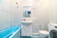 Потолки натяжные. Санузел совмещенный, просторный. На стенах-панели.