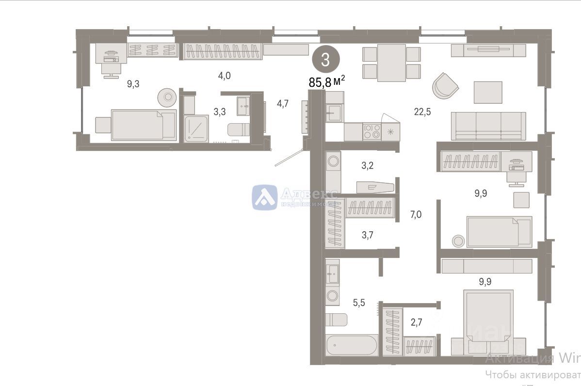 Продаётся уютная трехкомнатная квартира в новостройке на 3 этаже 7-этажного дома. Общая площадь квартиры составляет 85.76 кв.м., из них кухня занимает 22.5 кв.м. В данный момент квартира находится в стадии черновой отделки, что позволит вам воплотить в ней свои дизайнерские идеи и предпочтения.