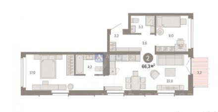 Продается уютная 2-комнатная квартира в новом доме на 9 этаже 9-этажного здания. Общая площадь квартиры составляет 66.28 кв.м., при этом на кухне имеется 22.8 кв.м. для вашего комфорта и удобства.