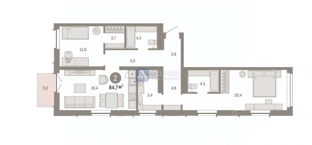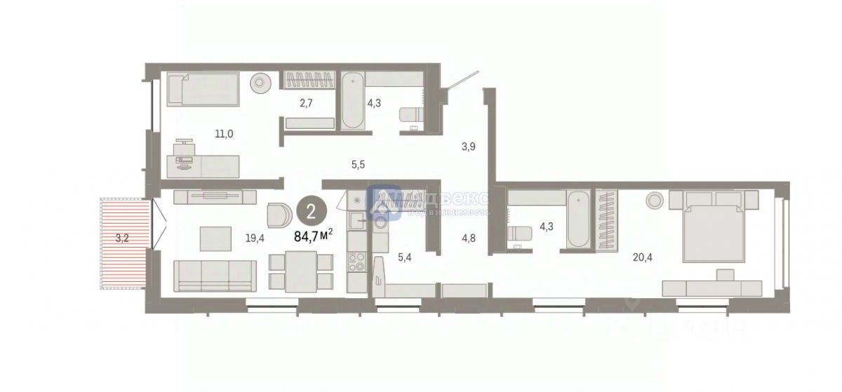 Прекрасная новостройка! Продается двухкомнатная квартира на 7 этаже 16-этажного дома. Общая площадь 84.66 кв.м., кухня 19.4 кв.м. Сейчас квартира с черновой отделкой, что позволяет новому владельцу воплотить в жизнь все свои дизайнерские идеи.