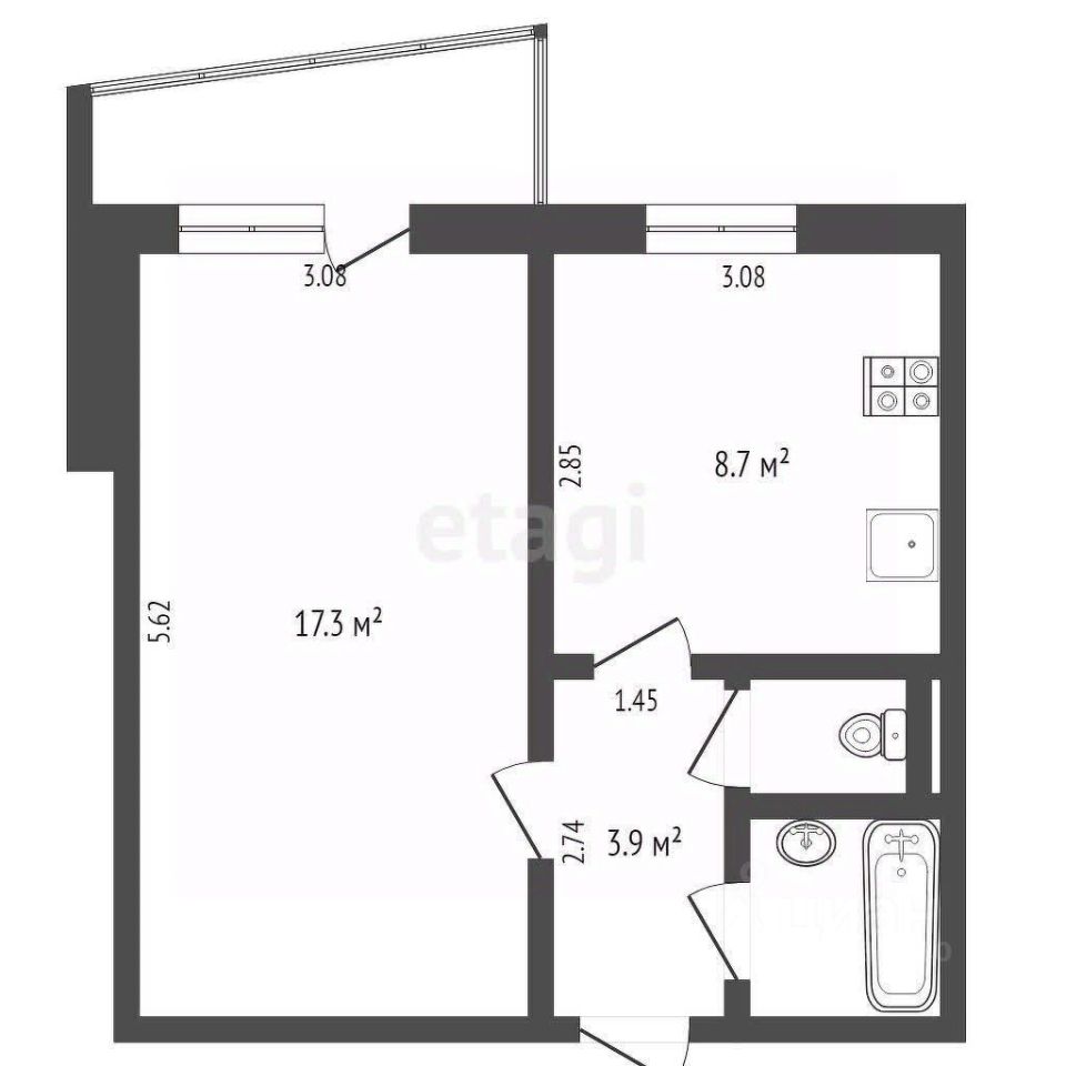уютная кухня, санузел раздельный,балкон.
