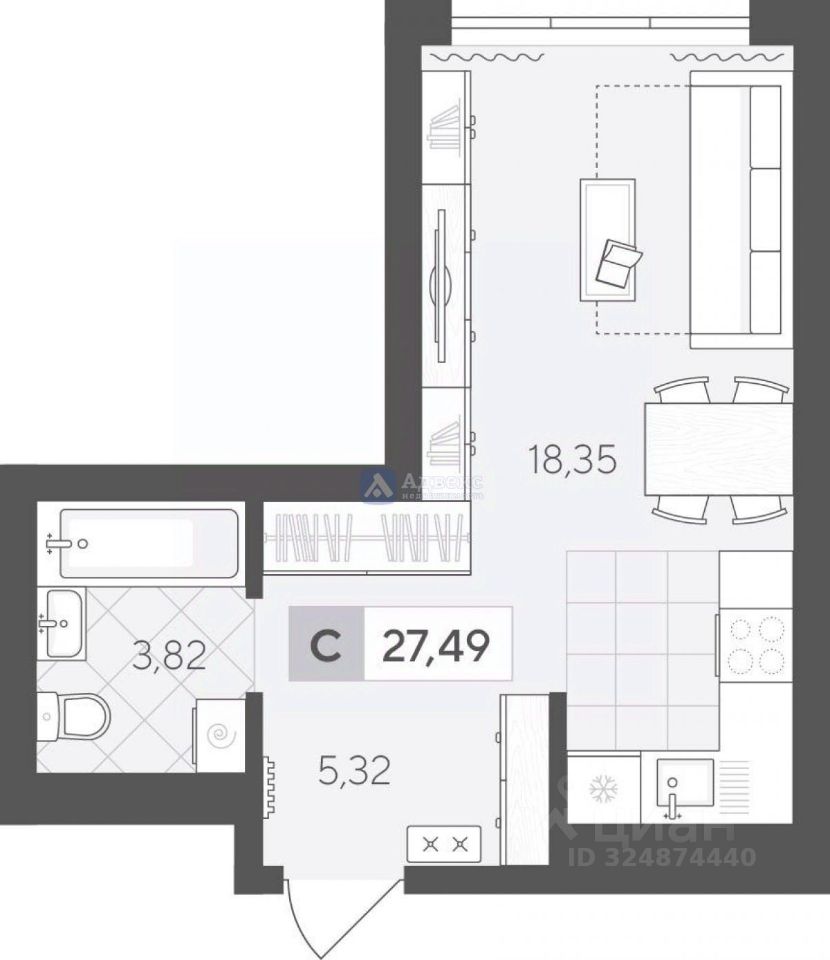 Продаётся однокомнатная квартира в новостройке на третьем этаже. Общая площадь - 27.49 квадратных метров. Это очень экономичный вариант для тех, кто ищет недорогое жильё. Квартира предлагается с чистовой отделкой, но без ремонта, что позволяет новому владельцу воплотить все свои дизайнерские идеи.