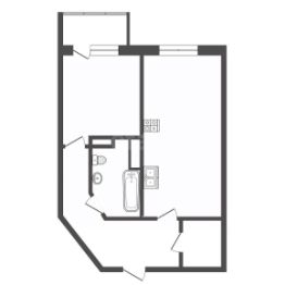 Квартира с эргономичной планировкой: просторная кухня-гостиная, спальная комната 9 м2 с выходом на балкон, совмещенный санузел.