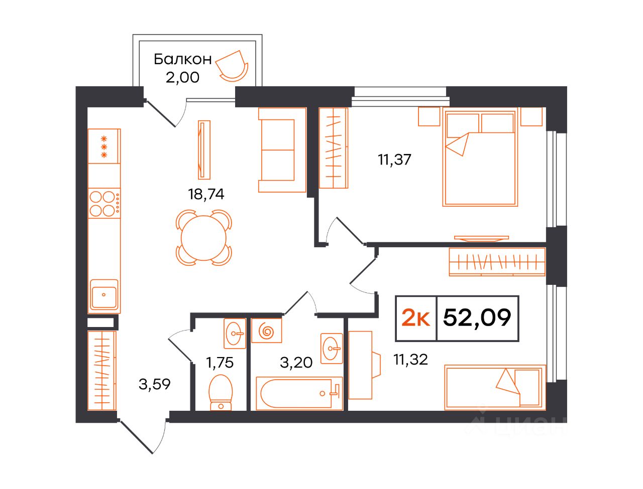 Продаётся 2-комнатная квартира в строящемся доме (Корпус 4А (Полевая, д. 117, корпус 12)), срок сдачи: IV-кв. 2026, общей площадью 52.09 кв.м., на 23 этаже. Новый жилой комплекс "Фатера" от Специализированного застройщика "Рубин" расположен по адресу: г. Тюмень, по ул. Полевая.