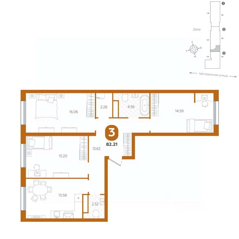 Эта трёхкомнатная квартира прекрасно сочетает в себе функциональность, стиль и комфорт, создавая идеальные условия для жизни. Уникальная планировка, большие помещения и возможность организации хранения делают её настоящим сокровищем для тех, кто ценит удобство и пространство.