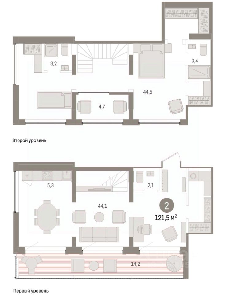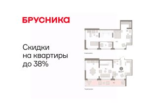 Квартира с кухней-гостиной и двумя спальнями в жилом районе "Речной порт". Особенности планировки: двухуровневая, свободная планировка, тёплая лоджия.